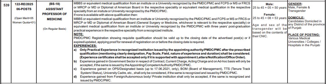 Secondary Keywords: BS-18 Medical Jobs Punjab, Internal Medicine Specialist Positions, Academic Medicine Careers, PPSC Online Apply 2025, Punjab Healthcare Faculty Jobs, Medical Education Government Jobs, Clinical Teaching Positions