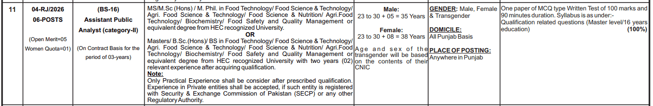 Posted Date: 4/2/2026 | Case No: 05-RJ/2026 | Department: Punjab Food Authority | Organization: PPSC